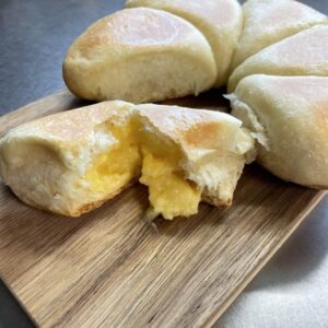 ホームベーカリーで生地作りから1次発酵まで行い、生地の分割から焼成までをホットクックで作るオーブンが無くてもできるパン作り。