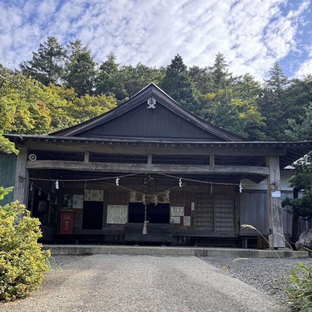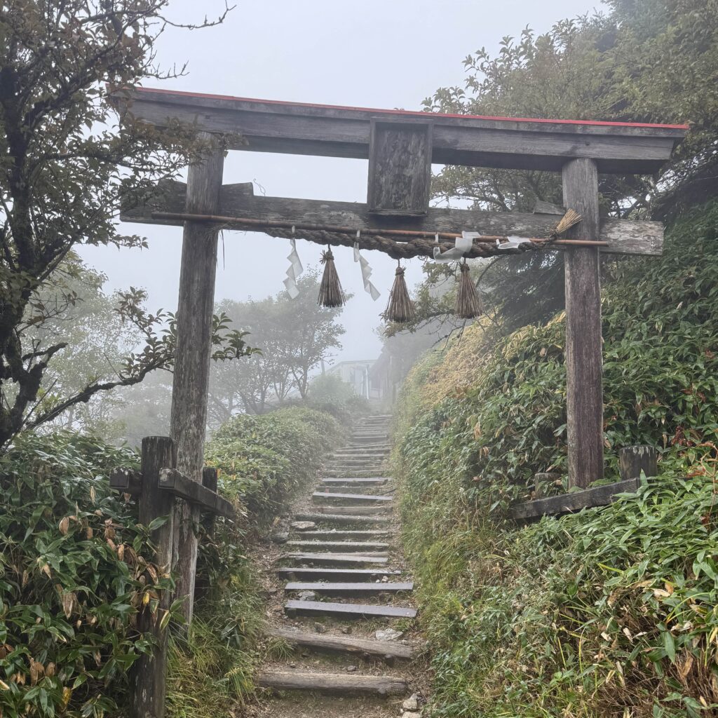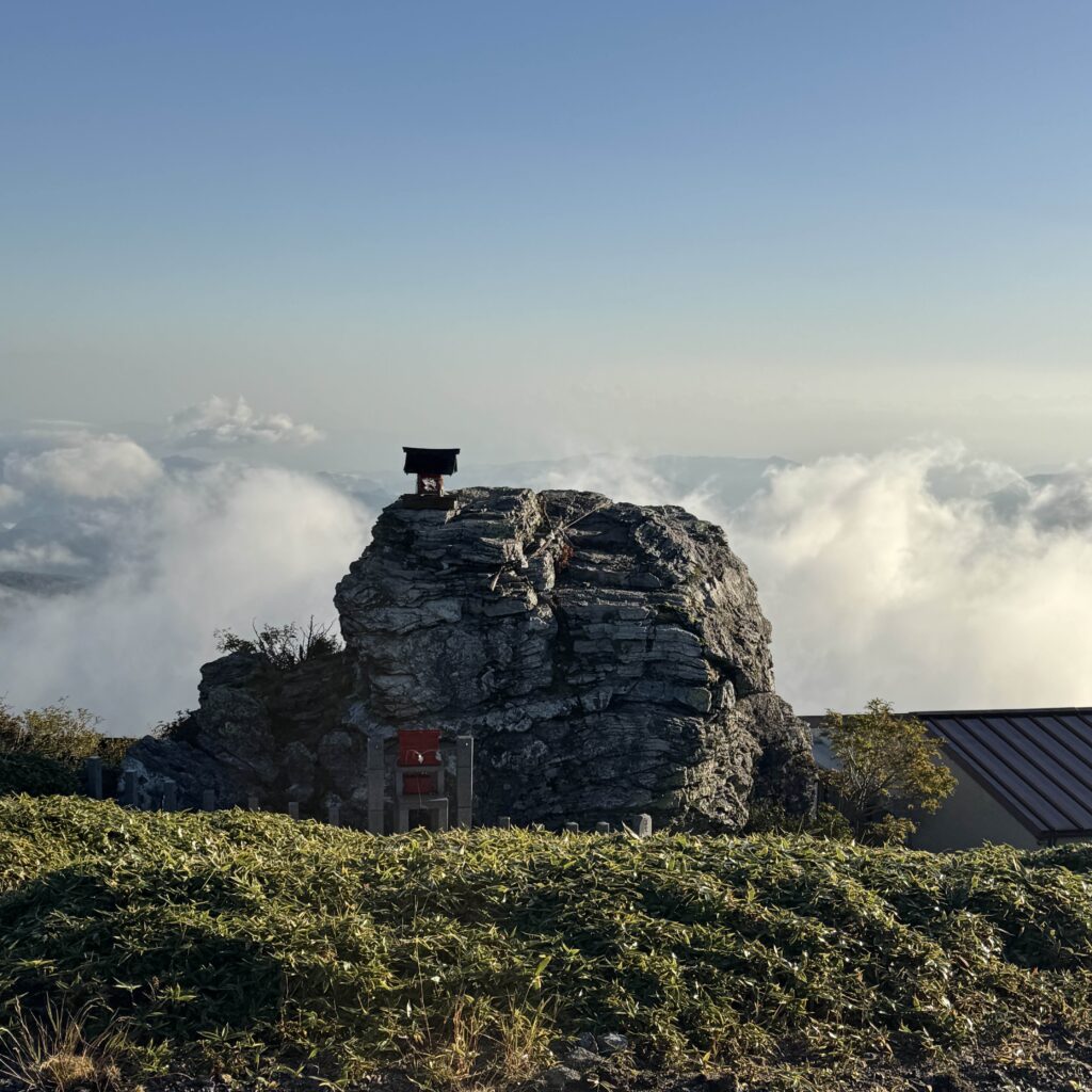 山頂には神社があり、この日は特別に中へ入ることができ、ご神体に触れるという貴重な体験をさせてもらった。