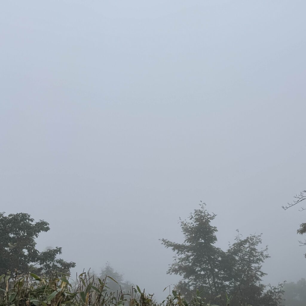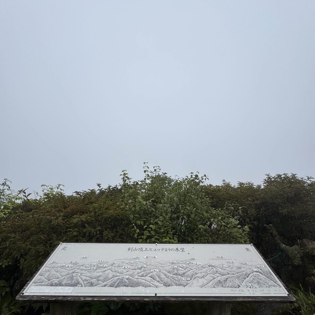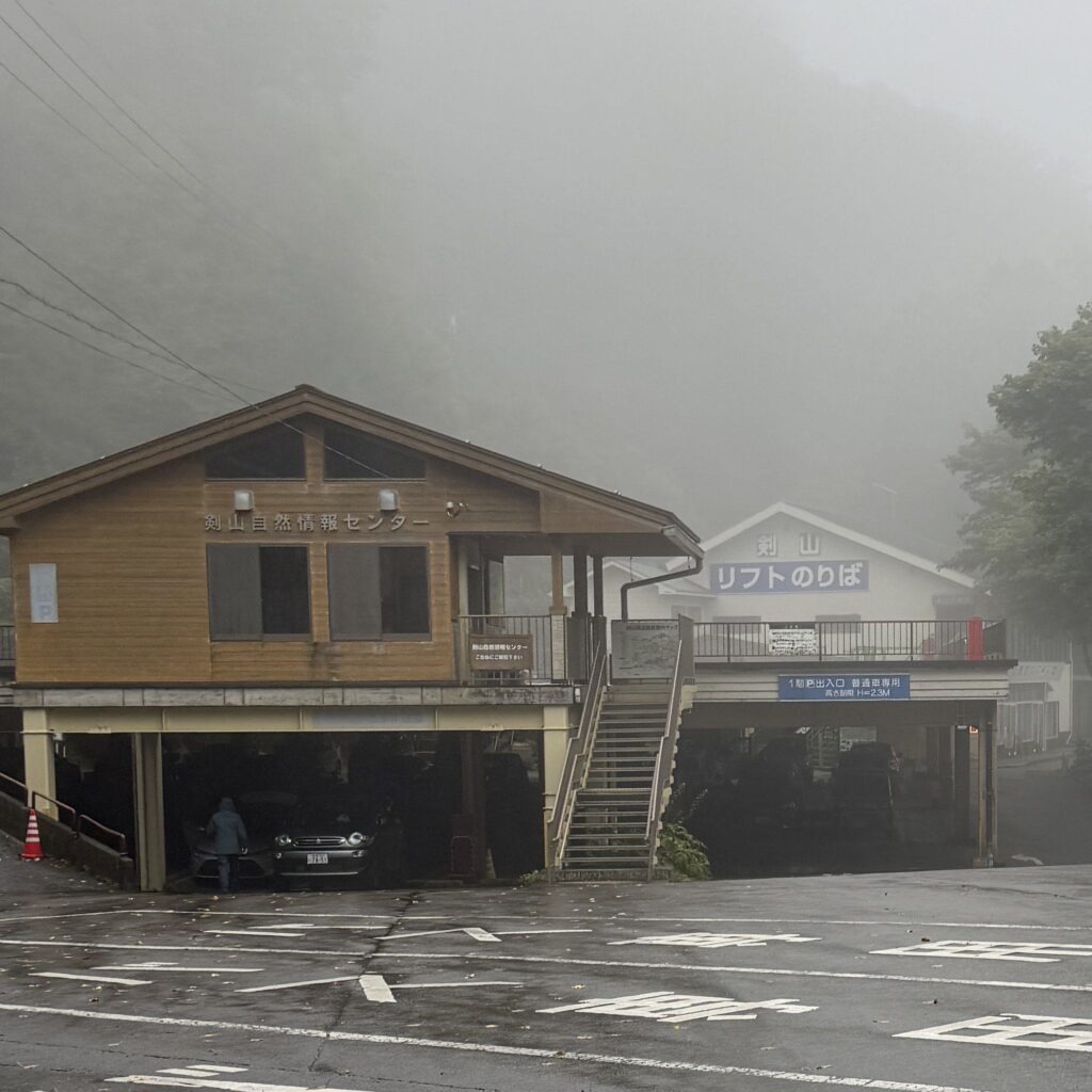 9月29日(月)の早朝に出発し、神戸付近から淡路島を経由し徳島県の剣山へ向かう。移動距離400km以上、最短で6時間半。昼頃、剣山リフト乗り場に到着。あいにくの雨で、上下カッパを着用してリフトに乗車。徒歩で登ることも可能だが、長距離ドライブに加え、その後の行程を考え、体力温存のため行きのみリフトを利用することにした。