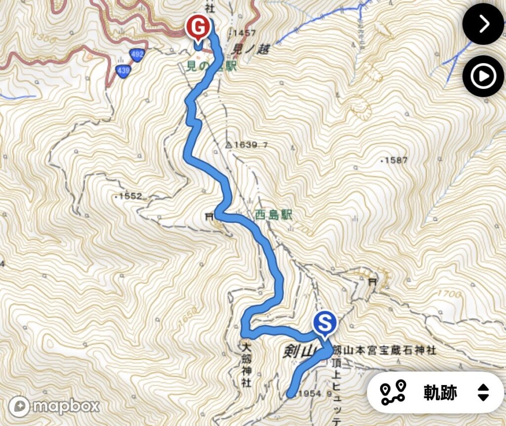 ・累積標高差 のぼり1054m/くだり1055m