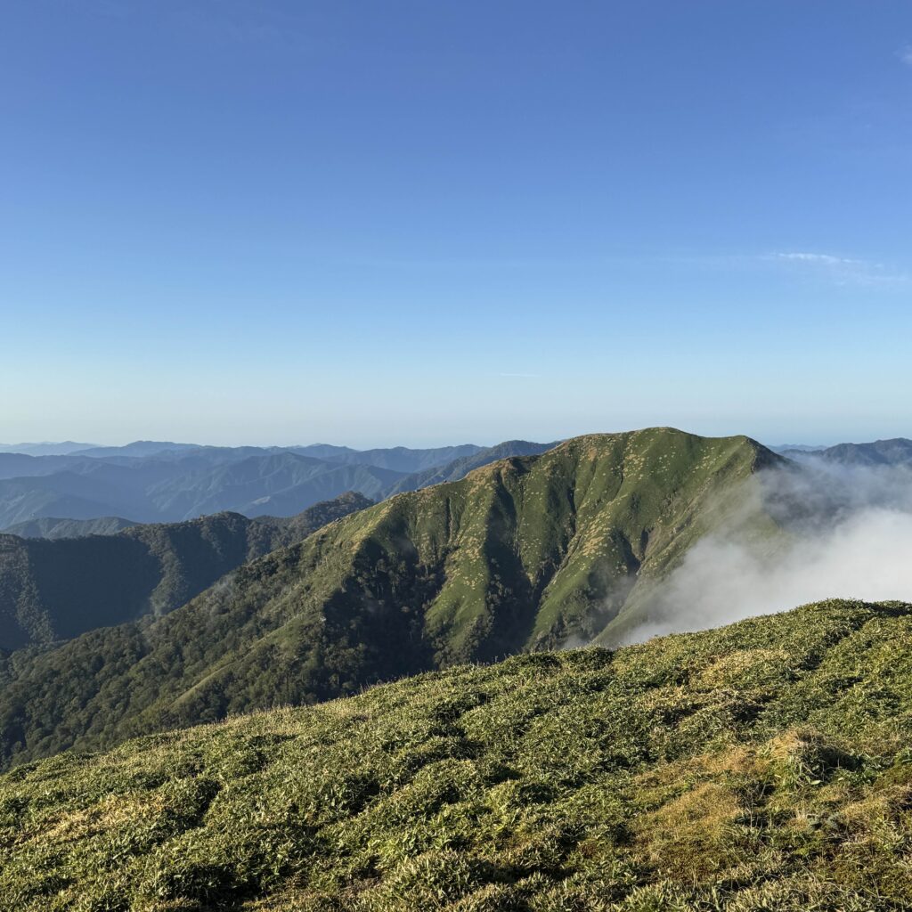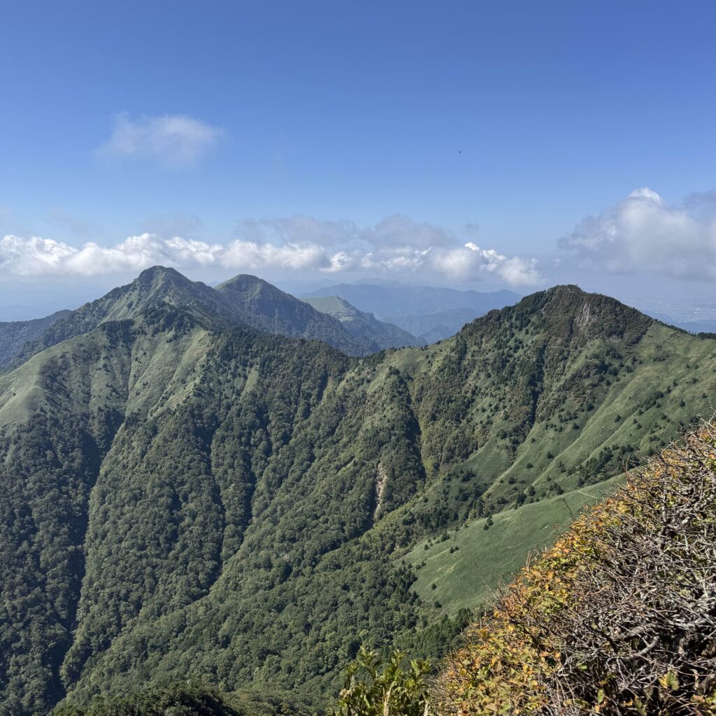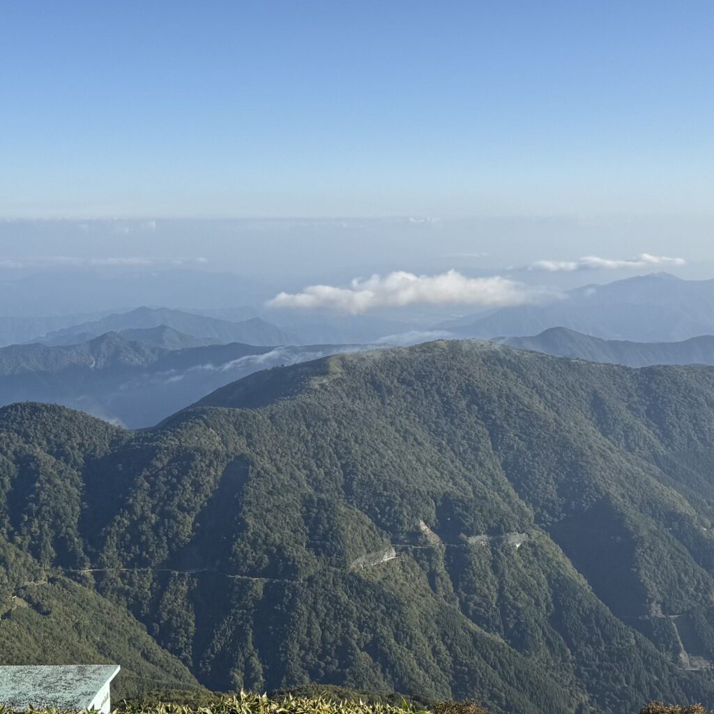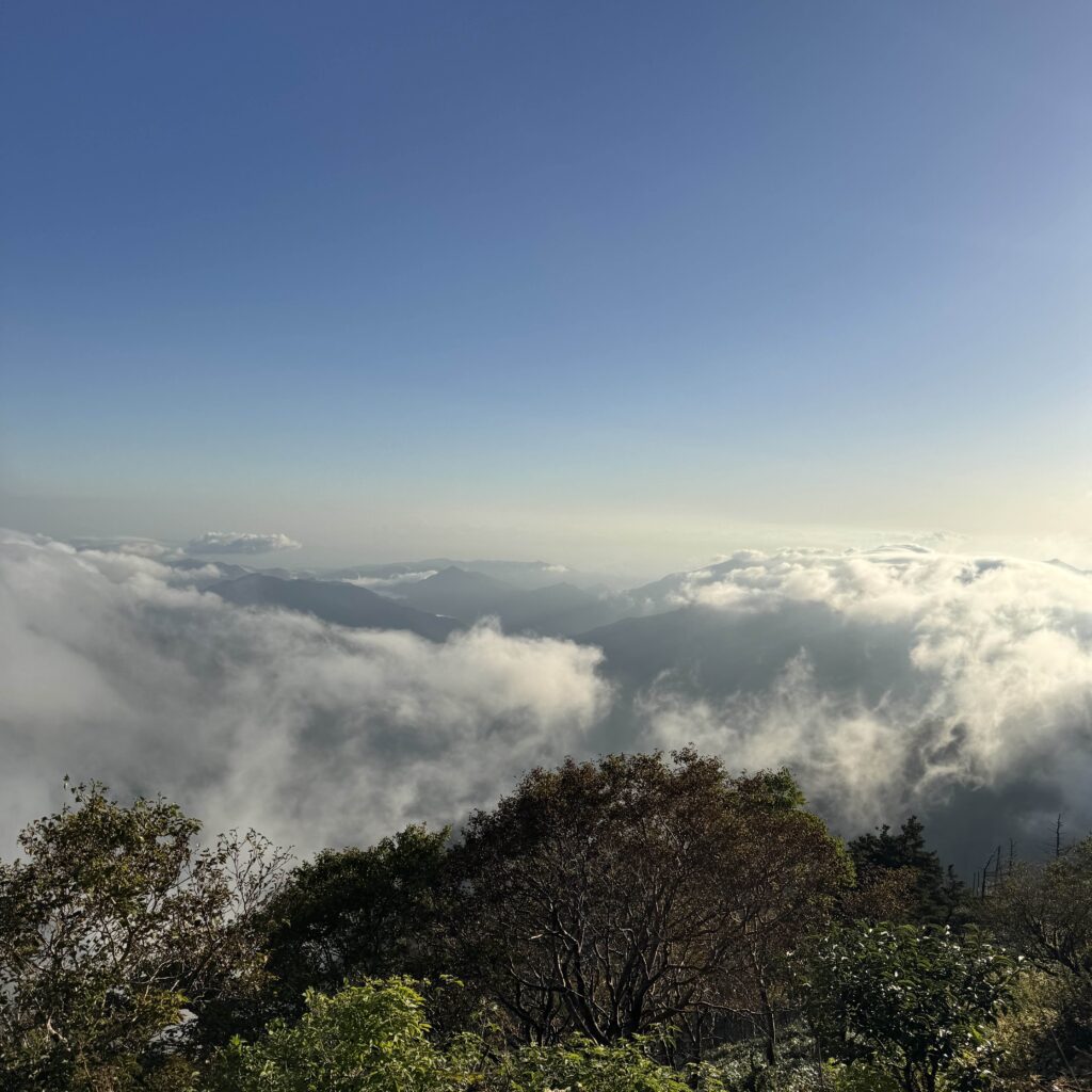 さらに山頂からの眺めが本当に素晴らしい。天狗岳が鋭く尖ったナイフのような姿でそびえていて、そのシルエットの美しさに見惚れてしまいました。四国まで足を運び、石鎚山に登れて本当に良かったと思える瞬間だった。
