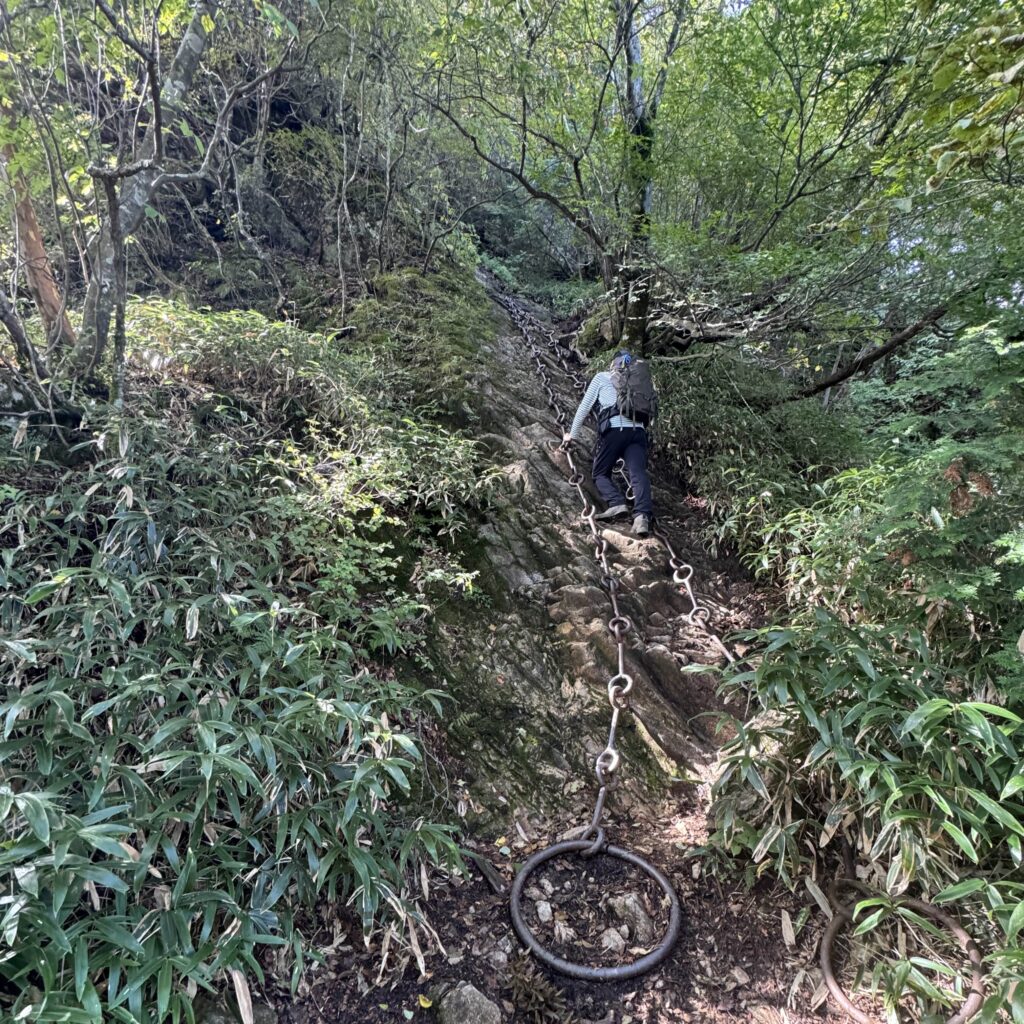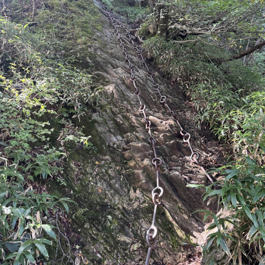 幸い平日で人が少なく、前後に登山者がいなかったので1つだけ試しに鎖を登ってみたが…「もう一生鎖場は登らなくてもいいや」と心から思った。ちなみに、ちゃんと迂回路があるので無理に鎖場を通らなくても山頂には行ける。