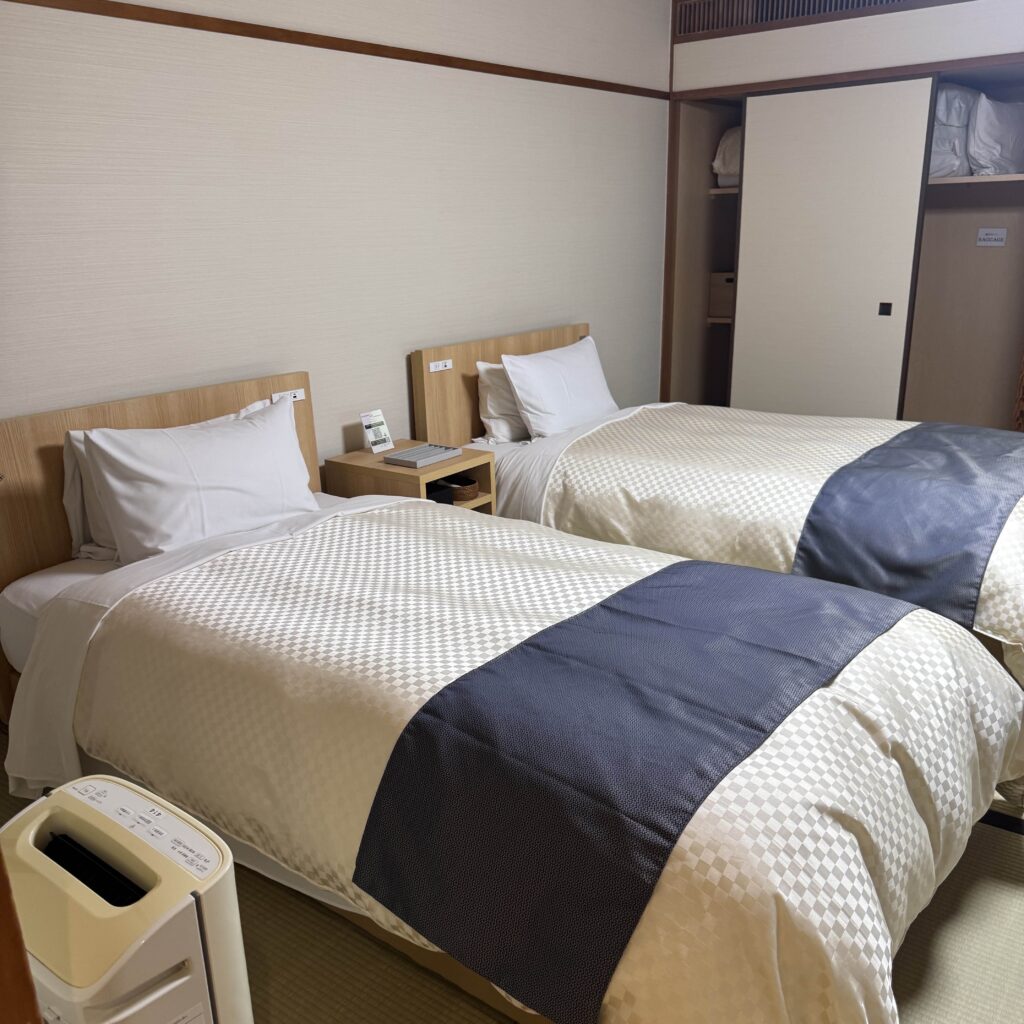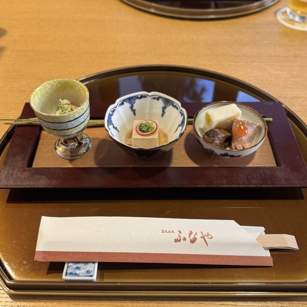 その後、車で約1時間移動し、道後温泉の老舗旅館「ふなや」に宿泊する。