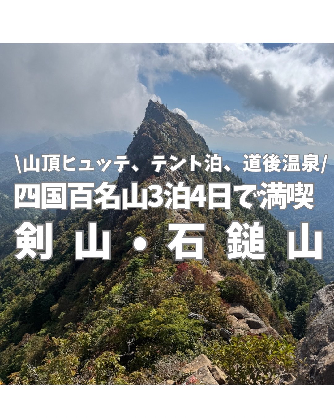 四国にある日本百名山「剣山」「石鎚山」を巡り3泊4日の旅を楽しんだ。