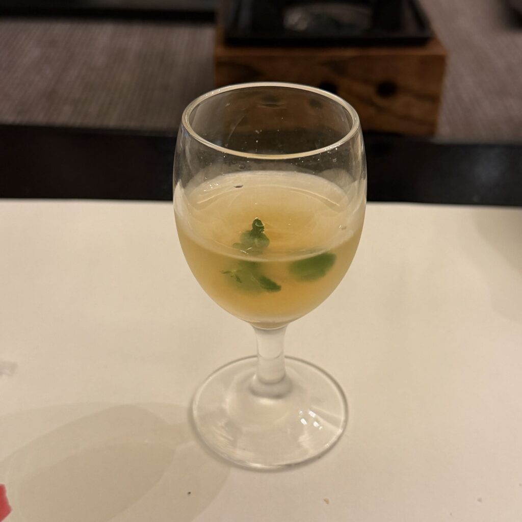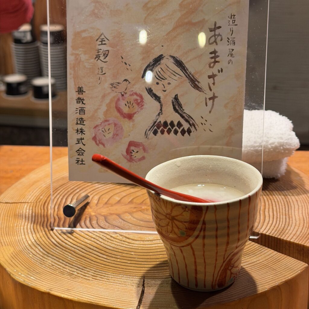 提供されるのは、スパークリングワイン、りんごジュース、そして甘酒等。