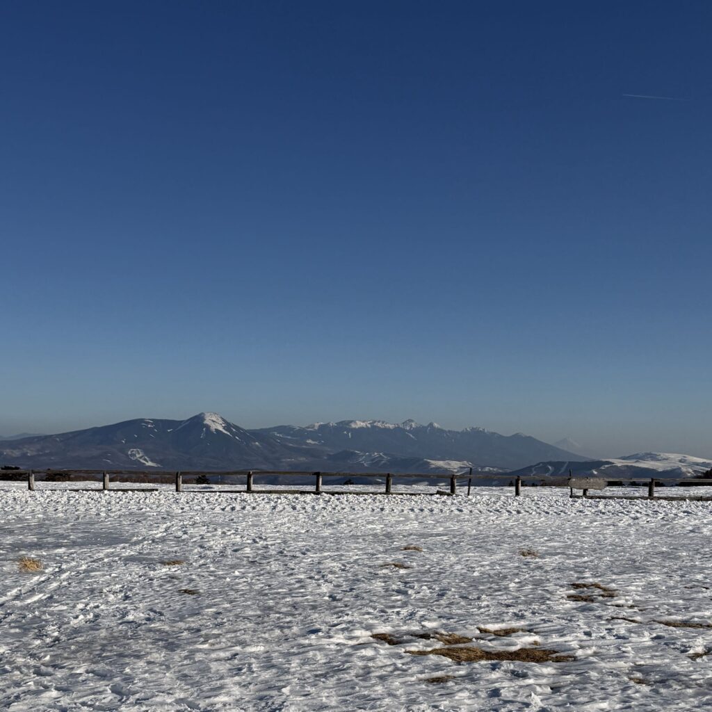 美ヶ原林道を約1時間、標高2000mのホテルを目指す道中、窓の外には安曇野の市街地や雪化粧をした北アルプスの絶景が。 運転手さんの軽妙な山々の解説や、地元ならではのイベント情報に耳を傾けているうちに、移動時間はあっという間に「特別なイベント」へと変わった。