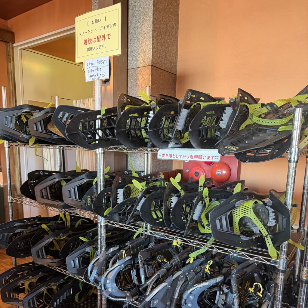 スノーシュートレッキングも、専用シューズを1,500円で激安でレンタルでき、気軽に楽しめる。