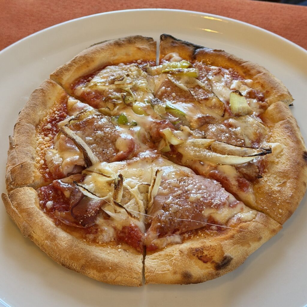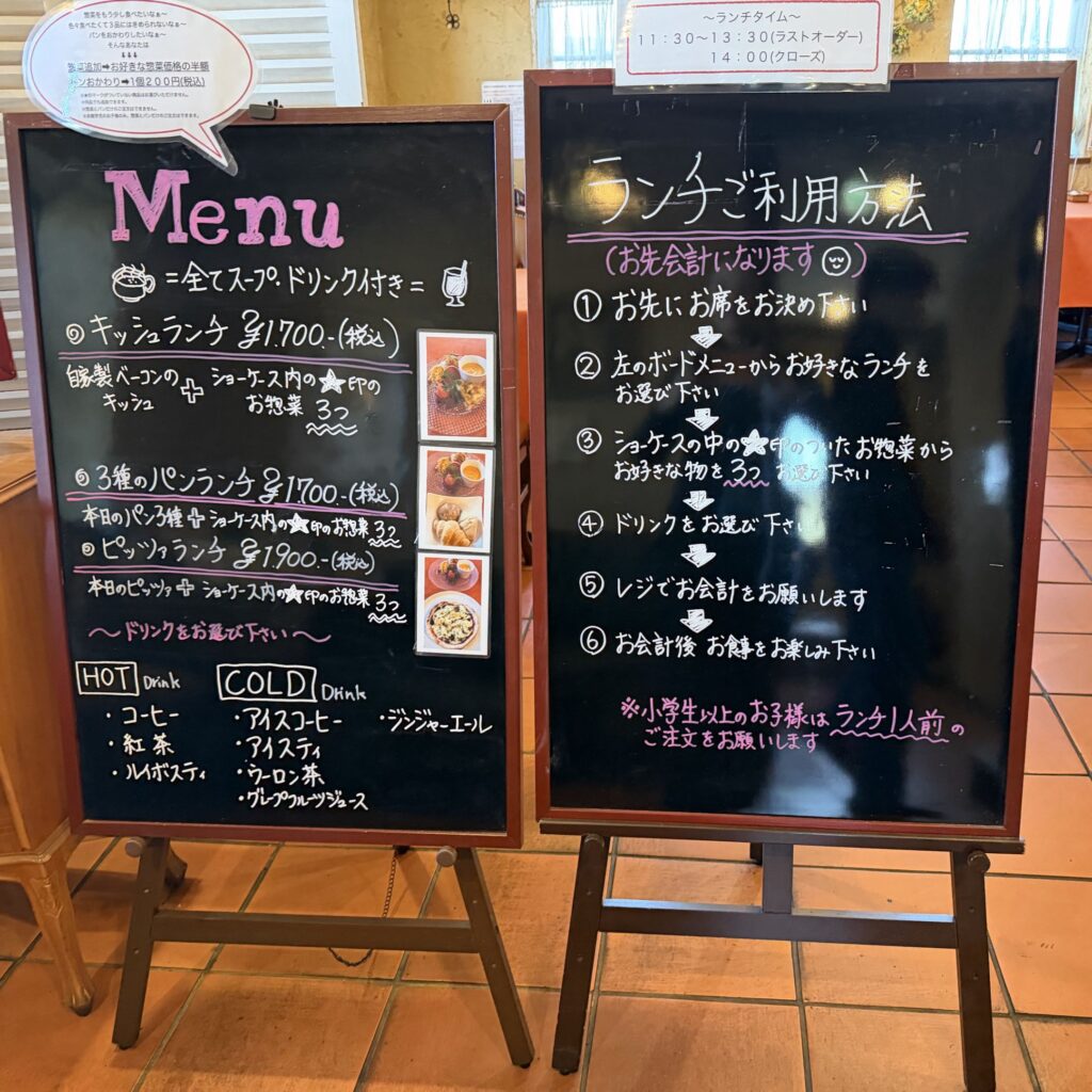 まずメイン料理を ピザかキッシュから選ぶスタイル。