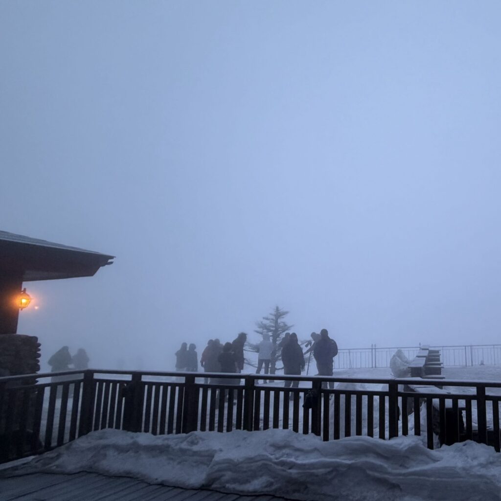景色も見えないガスの中、それでも歩きに出る人たちがいる、その本気度に少し驚いた。