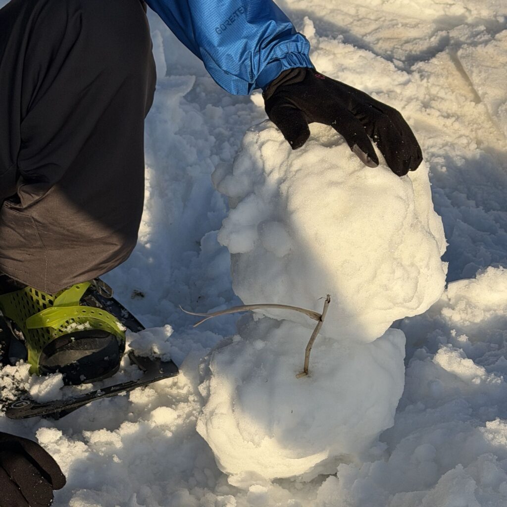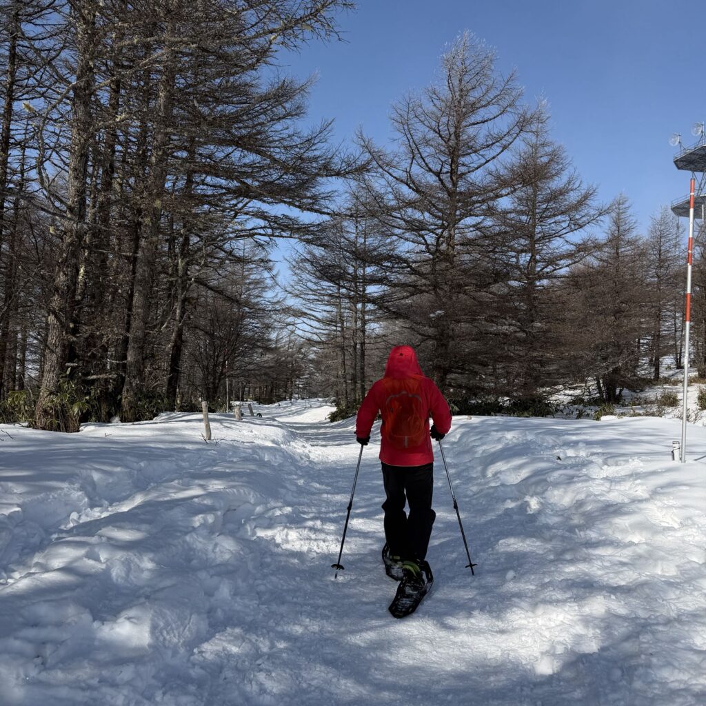 幸運にも2日目は好転に恵まれスノーシューをつけて夫と王ケ鼻までトレッキングができた。